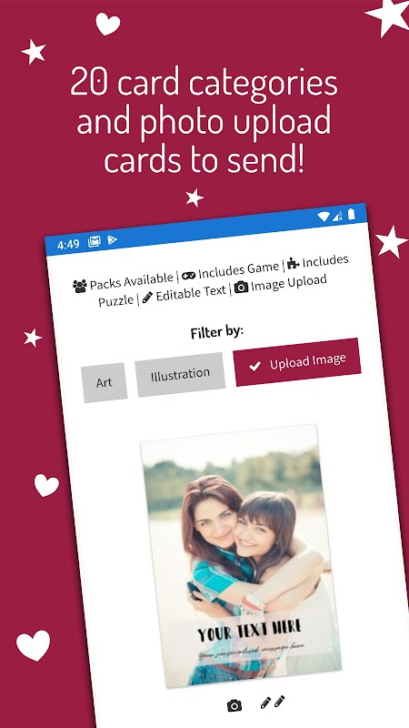 • Jadikan pribadi: Pilih dari kartu tempat Anda dapat mengupload foto Anda sendiri dan menyesuaikan teks Anda.