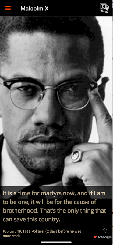 Malcolm X, Kronolgi Singkat, Kehidupan, Kutipan, galeri kecil. Aktivis hak asasi manusia