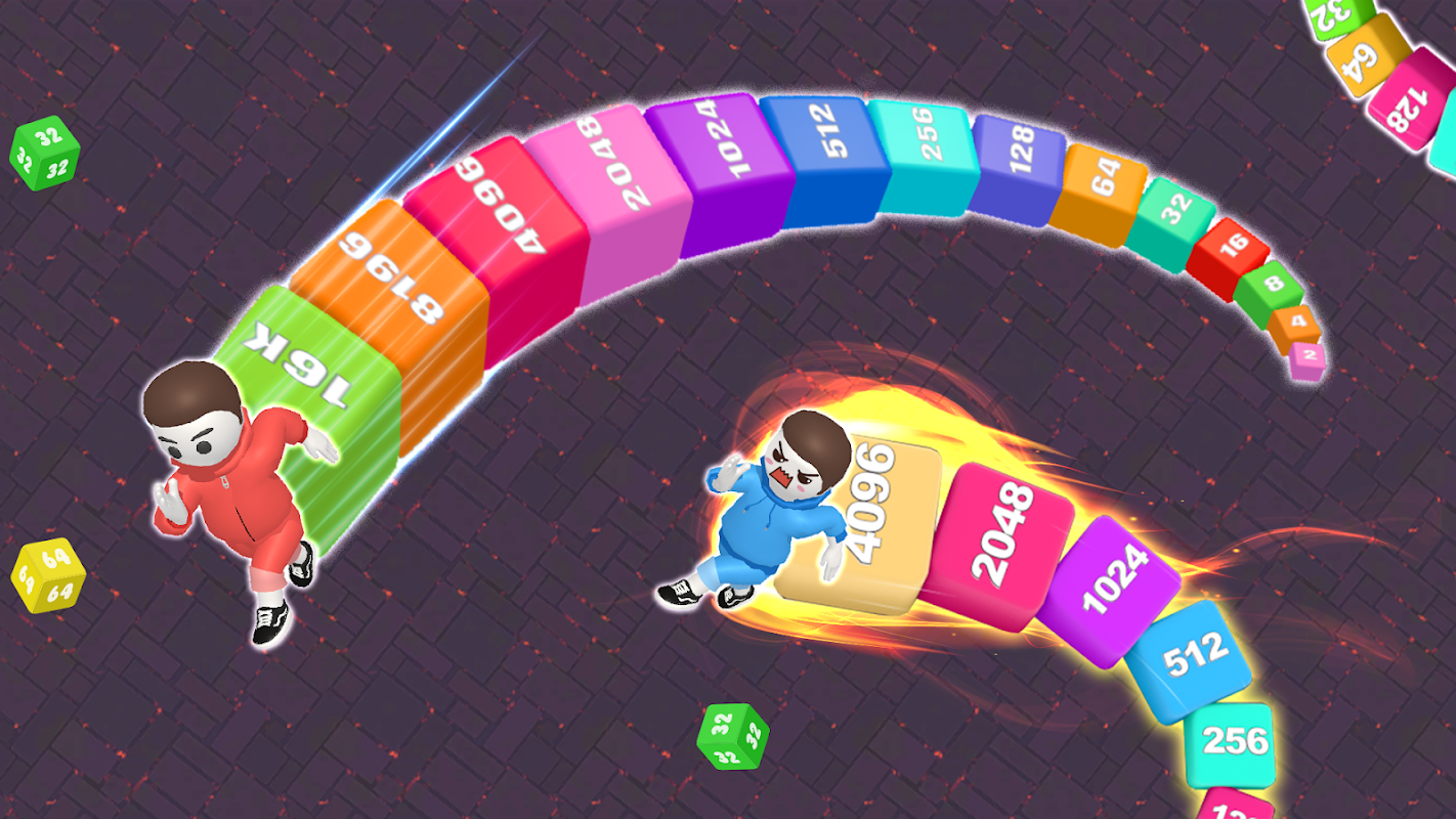 Man Run 3D: Merge Cube 2048 adalah kombinasi hebat antara game man run dan 2048. Aturan permainannya sangat mudah dimengerti! Geser di arena, gabungkan kubus sebanyak mungkin untuk tumbuh lebih panjang dan lebih kuat, dan kalahkan lawan untuk menduduki peringkat teratas papan peringkat. Selain itu, Anda dapat mempersonalisasi karakter Anda dengan membuka semua skin dan item di toko.