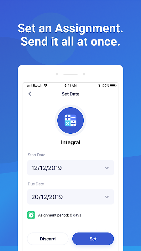 - Anda memilih topik dan durasi penugasan. Semua siswa Anda menerima pekerjaan rumah dan pemberitahuan Anda secara bersamaan.