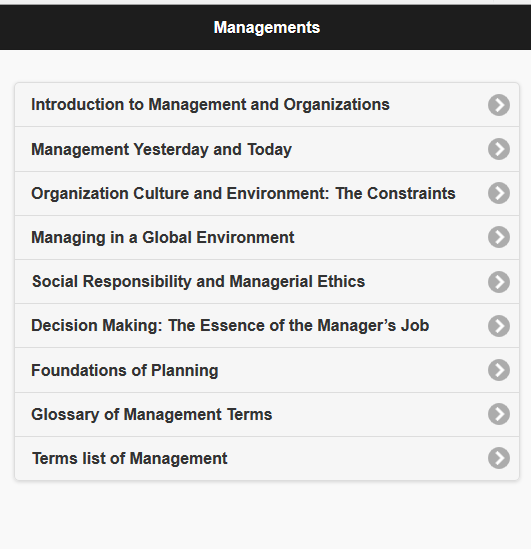 Dalam aplikasi ini, Anda akan mendapatkan Catatan Kuliah Manajemen, Glosarium Manajemen dan Koleksi Ketentuan Manajemen.