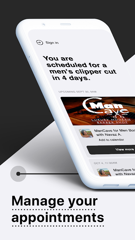 Aplikasi kami memungkinkan Anda memesan dan membayar potong rambut atau bercukur dalam beberapa ketukan.