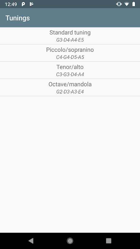 Tuning mandolin alternatif (Piccolo, Sopranino, Tenor, Alto, Octave, Mandola).