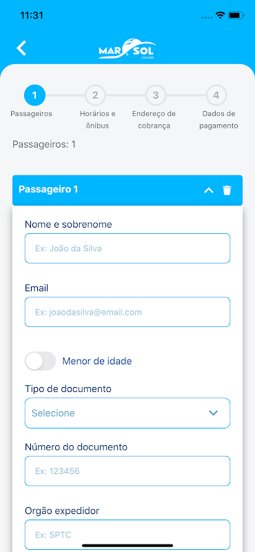 Aplicativo Mar & Sol para compra de passagens.