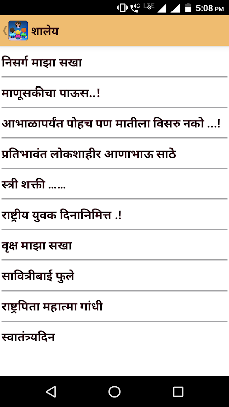 मराठी भाषणे (Marathi Speech ) या अँप्लिकेशन मध्ये मराठी भाषणांचा समावेश केला आहे.