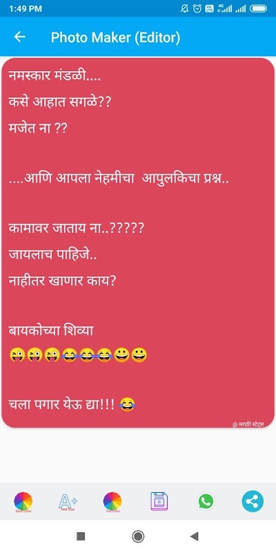 - Kami memperbarui Lelucon Marathi baru setiap hari dalam bentuk teks dan gambar.