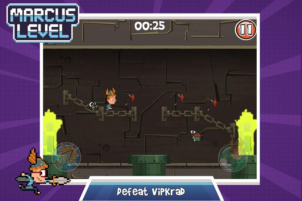 To avoid the Game Over and get a chance to come back to his world, Marcus will have to finish the game and free the Princess Aria from the villain Vipkrad.