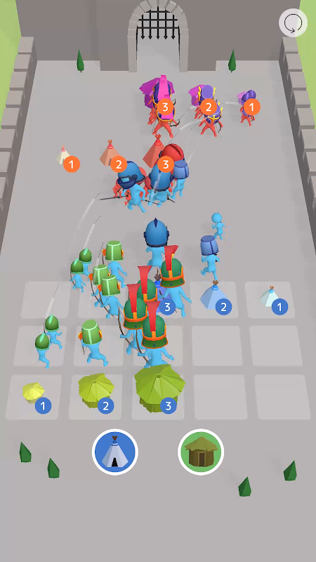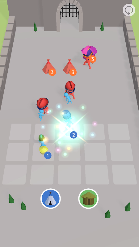 Gabungkan unit Anda untuk menjadi lebih kuat. Hancurkan semua musuh Anda untuk membersihkan panggung!