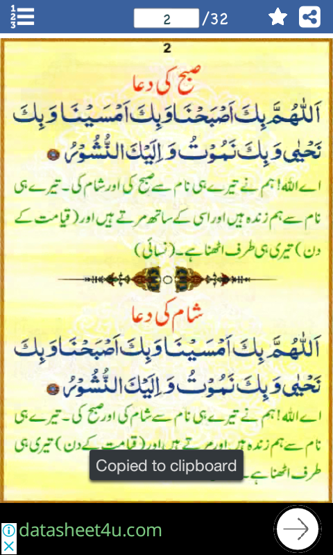 Masnoon Duain dilengkapi dengan Quraniduain esensial yang dipraktikkan dalam berbagai acara dan upacara misalnya untuk pemakaman, untuk tidur dan bangun, minum dan makan, kepuasan jiwa, pergi dan pulang dari masjid, doa setelah salat dan banyak lagi. Sekali setelah mengunduhnya Anda dapat menggunakannya di mana saja, itu seperti susu saku yang diperlukan seperti Azkar untuk Muslim & Dua adalah bagian integral dari kehidupan sehari-hari yang diminta setiap saat di setiap langkah.