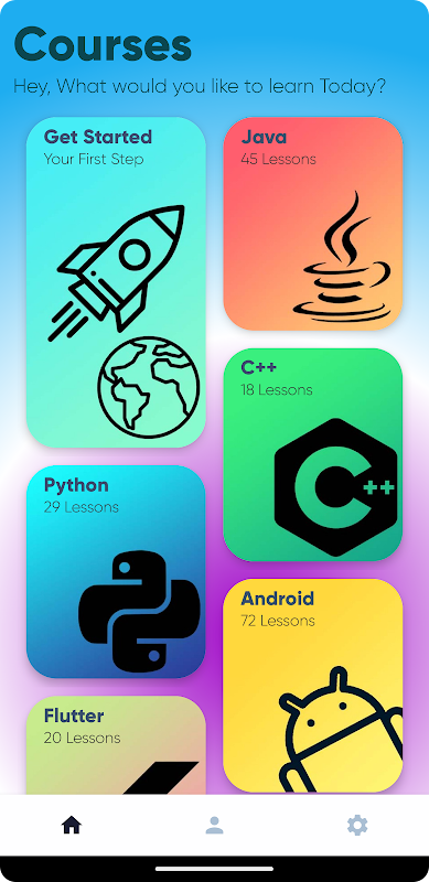 Saat ini, kami menyediakan kursus Java, Android, Kotlin & Flutter untuk menjelaskan konsep pemrograman. Anda dapat mempelajari konsep-konsep ini dan menerapkannya di setiap bahasa pemrograman. Jika Anda ingin belajar pemrograman C, atau belajar C++, atau belajar python, atau belajar java, aplikasi ini akan membantu. Segera, kami akan mendukung Bahasa Pemrograman lainnya.