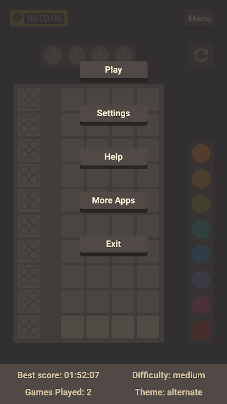 Ini adalah permainan pemecah kode klasik untuk dua pemain. Satu pemain pembuat kode dan yang lainnya adalah pembuat kode. Dalam game ini komputer adalah pembuat kode dan Anda adalah pembuat kode. Komputer akan menghasilkan urutan warna acak dan tujuan Anda adalah untuk menebak urutan warna rahasia itu secepat mungkin. Setiap kali Anda meletakkan tebakan Anda di papan komputer akan memberi Anda petunjuk tentang tebakan Anda yang akan membantu Anda dalam menebak kode warna rahasia. Petunjuk itu adalah: