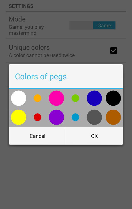 Elle vous permet également de vous entrainer, en choisissant tous les paramètres: nombres de pions à deviner, nombre de couleur disponible, possibilité d'utiliser deux fois la même couleur etc.