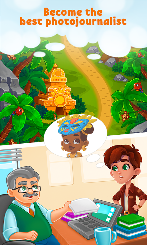 Perwakilan penuh warna dari genre ini Match 3 ☘️☘️☘️ memberitahu kita tentang perjalanan karakter utama. Ada alur cerita yang kaya di sini, yang menjadi jelas bagi pemain dari peluncuran pertama ke tingkat terakhir. Setelah memulai game secara gratis, pemain dapat memilih karakter utama pria atau wanita 👩 tergantung pada jenis kelaminnya, yang merupakan koresponden profesional. Ada banyak tugas rumit di hadapannya, di mana ia harus membuat majalah untuk beberapa foto - karakter yang tidak biasa dari bumi.