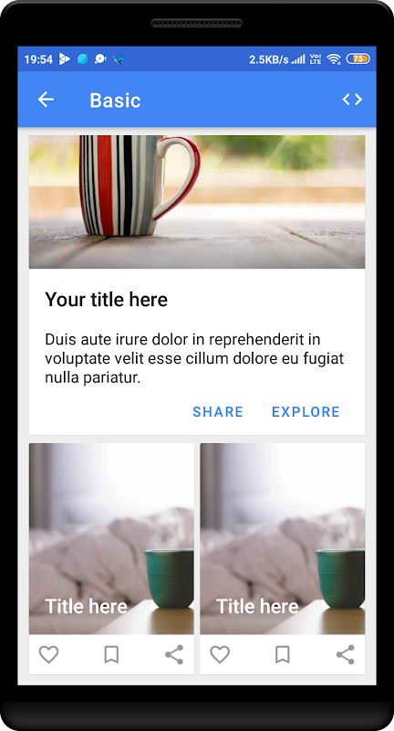 Material Design Code App showcases new Android Material Design Components. An app to style all your UI widgets based on Google's Material Design guidelines.