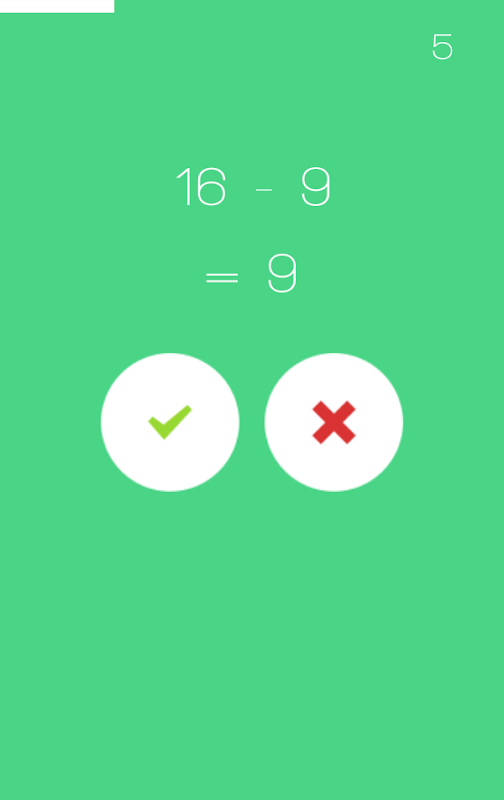 Keep your mind sharp and improve your decision-making with Math Challenge. One second will be given to say correct or incorrect to a simple math equation. The questions are generated dynamically so you will face new math operations each time you play. And to make it more interesting, you can challenge your friends with Google Play Service, by scoring high points. Solve the operations, workout your brain and have fun with this unique math game.