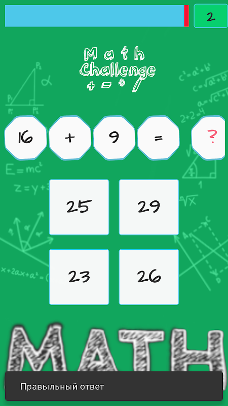In this mathematical game you will have to show all your abilities to solve arithmetic examples by addition, subtraction, multiplication and division. Any mathematical game on the account trains arithmetic skills. But when the time to solve the arithmetic operation is limited, this skill develops at a higher level.