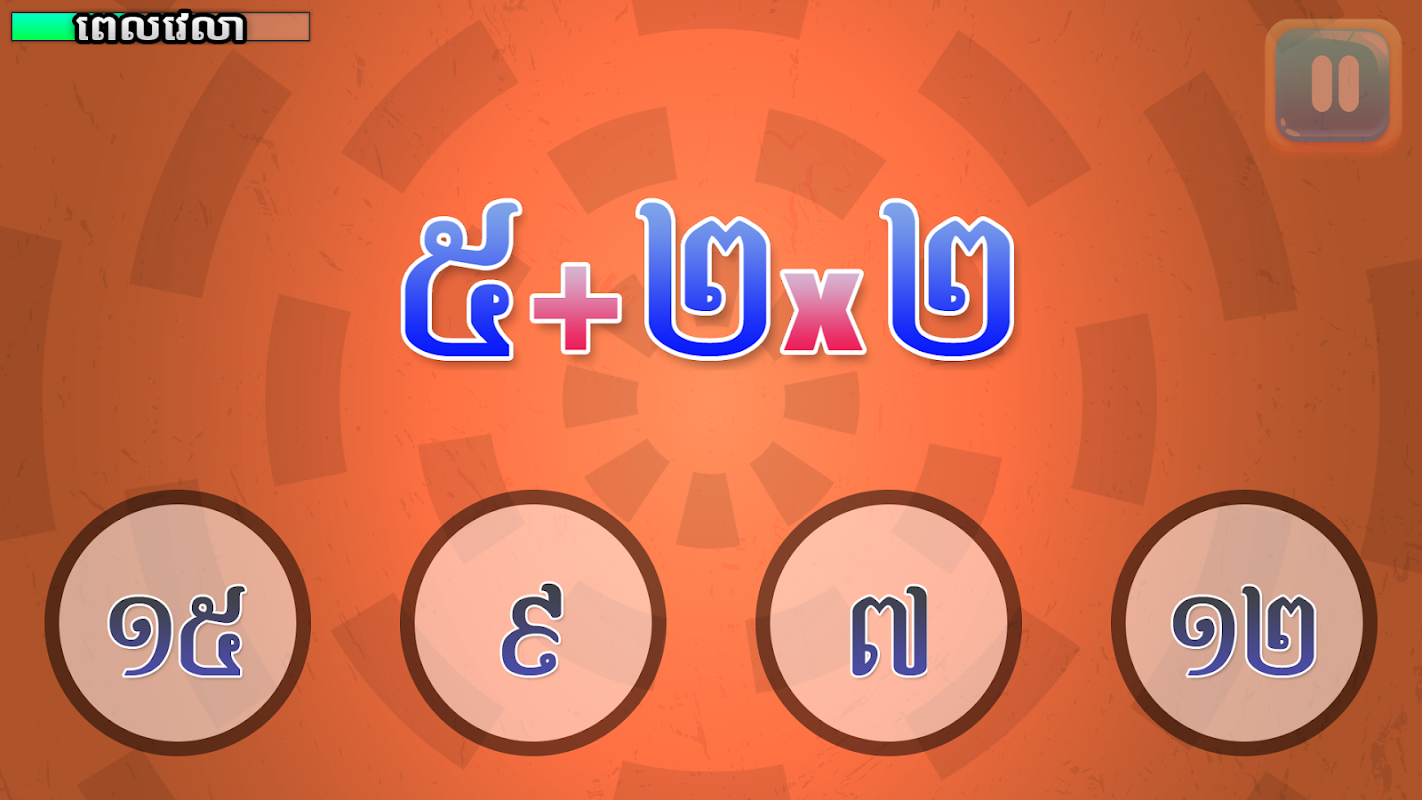 This game is for all age who wish to challenge and strengthen basic math operation of Khmer Numbers include addition, subtraction, multiplication and division.
