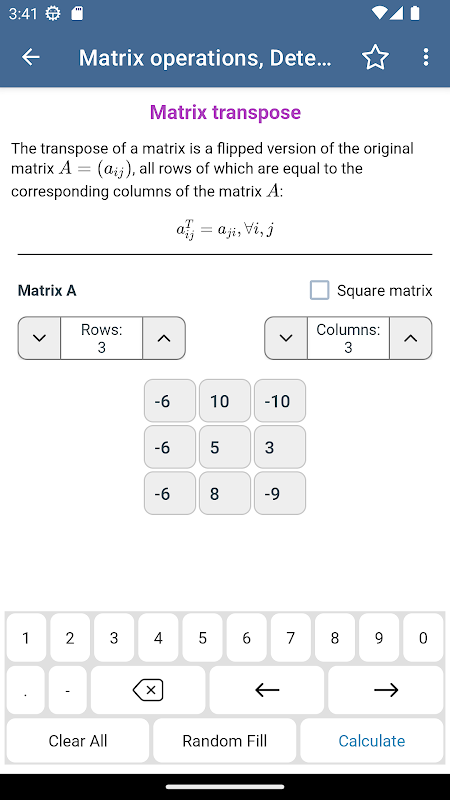 Aplikasi ini mencakup lebih dari 100 kalkulator yang mencakup beragam topik matematika. Setiap kalkulator dilengkapi penjelasan teoretis singkat dan melakukan perhitungan langkah demi langkah menggunakan rumus yang tepat — menjadikannya ideal untuk belajar, memeriksa pekerjaan rumah, atau referensi cepat saat bepergian.