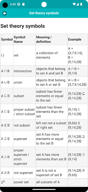 Matematika, Aljabar, Geometri, Kalkulus, Alphabet, Probabilitas dan statistik simbol bagi siswa. Dalam aplikasi ini, Anda akan mendapatkan informasi matematika ini: