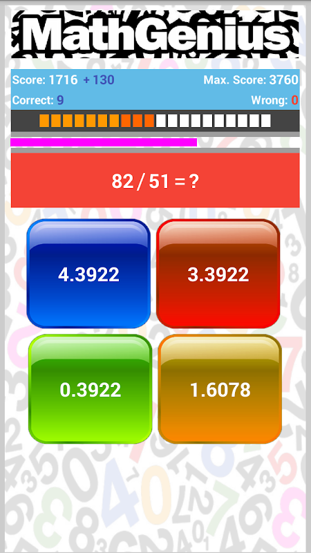 MathGenius is an app that helps children who already know how to add, subtract, multiply and divide, improve their ability and speed to develop these mathematical operations, and adults, to keep their brain active in an easy and simple way.