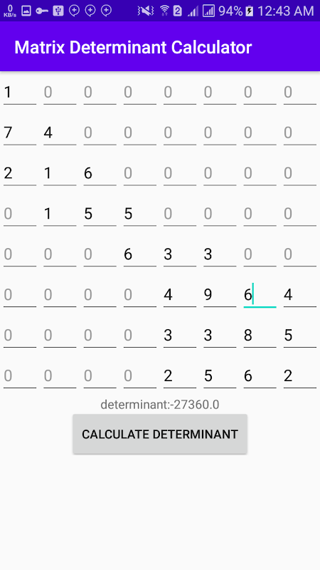 Aplikasi ini akan membantu Anda menghitung determinan matriks ukuran Anda antara 2x2 dan 10x10 dengan mudah!