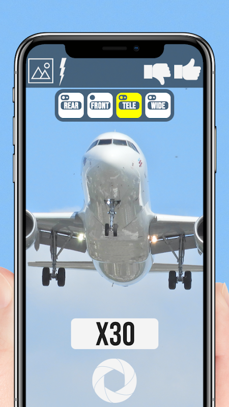 Dengan Zoom Maksimum Anda dapat memperbesar objek 150 kali dan bahkan lebih tergantung pada kamera ponsel cerdas Anda! Perbesar tampilan pesawat hingga 150 kali!