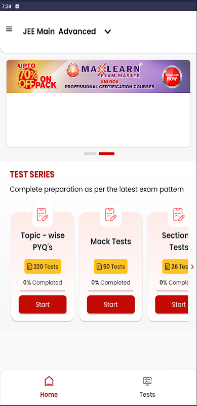 Jelajahi rangkaian tes yang komprehensif, navigasikan beberapa ujian menggunakan fitur pencarian dan seleksi yang mudah digunakan, semuanya dapat diakses dengan mudah di satu layar.