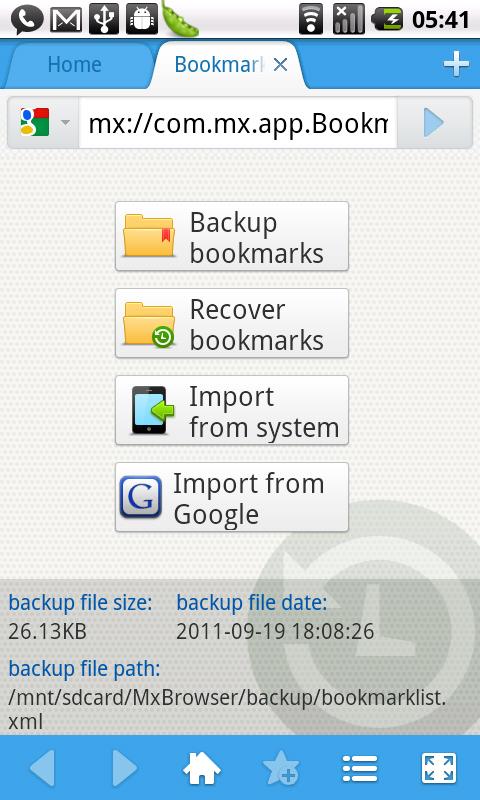 Back up and restore your bookmarks with this very useful add-on. You can also import your bookmarks from default Android browser. Bookmarks will be saved to an SD card.