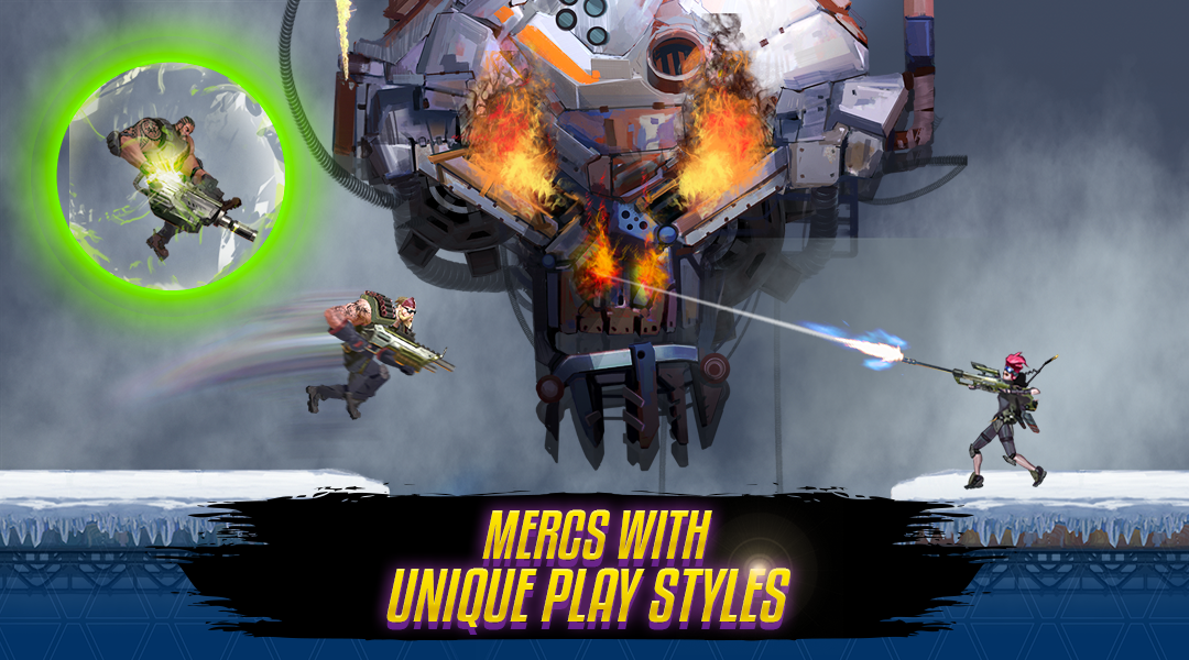Hang back and snipe or run-and-gun to make it up close and personal. Each merc has their own unique play-style. Rank up your mercs through skillful play to pwn some noobs.