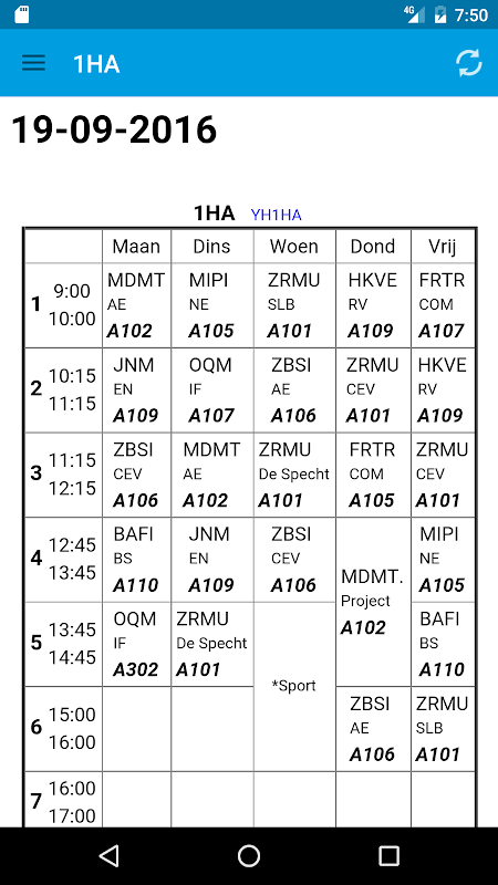 Rooster app voor MBO Utrecht Economie & Ondernemen, locatie Australiëlaan 23