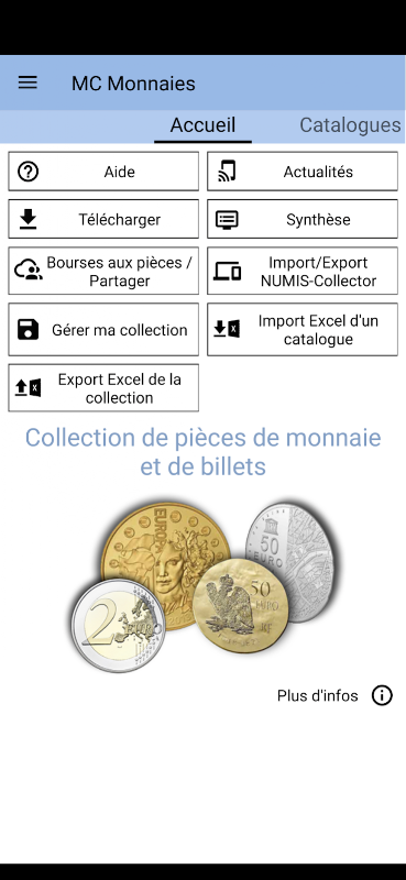 Aplikasi untuk mengelola koleksi koin euro, uang kertas, koin kuno, tiket wisata.
