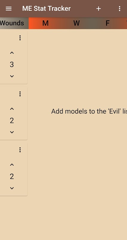 A stat tracking app for the table top wargame, Middle Earth: Strategy Battle Game, to keep track of your models' Might, Will, Fate and Wounds.