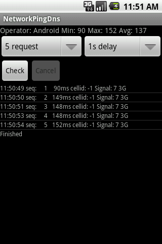 Bila menggunakan jaringan Telia Sonera saya melihat bahwa Radio Internet saya berhenti bekerja, saya meskipun itu ponsel salahku, tidak ada untuk melihat apakah jaringan lambat. Jadi saya menulis aplikasi ini untuk mengukur latency jaringan.
