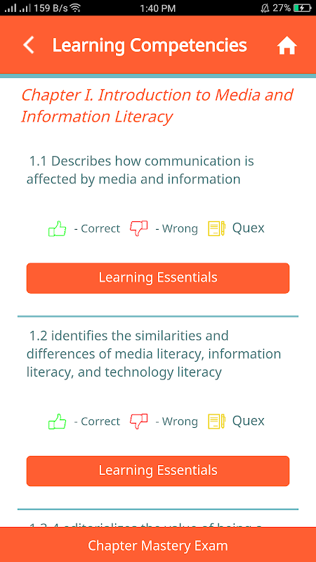 QuexBook adalah modul pembelajaran mobile yang berpola pada Panduan Kurikulum K12 Departemen Pendidikan (DepEd K to 12 CG) yang dirancang untuk meningkatkan dan memperkuat pengetahuan tentang berbagai mata pelajaran di SMP dan SMA.