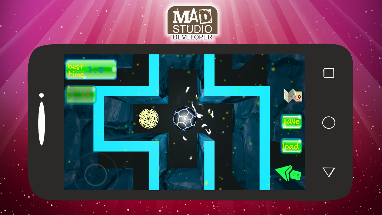 Mega Mad Maze is a fascinating "Labyrinth" puzzle game for your smartphone or tablet, made in the colorful style of a royal candy and confused as the Amazon River.