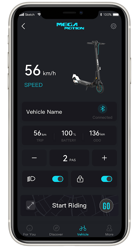 Sebuah APP yang dirancang khusus untuk smartscooter Mega Motion.