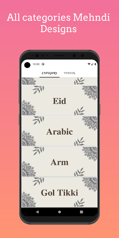 Aplikasi ini mencakup kategori desain mehndi berikut: