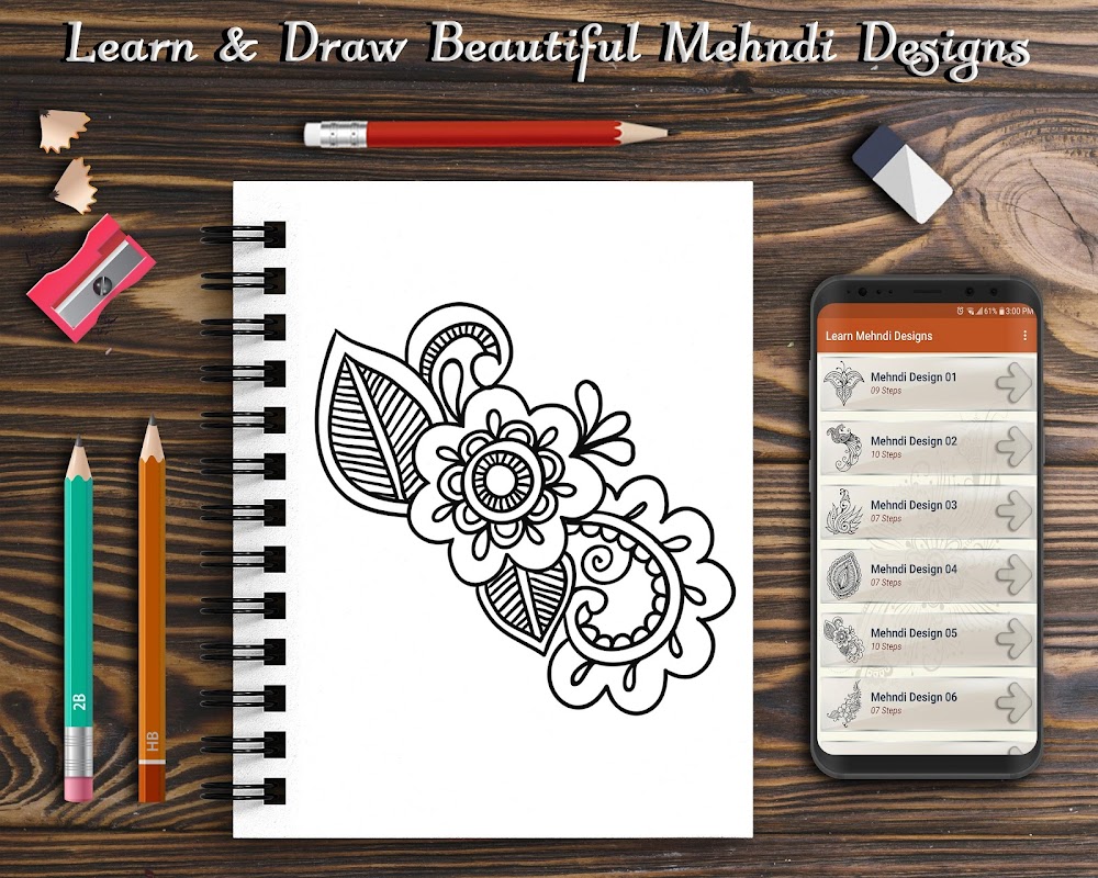 Cukup ambil kertas dan pensil dan pilih desain mehndi mana yang ingin Anda gambar, ikuti panduan langkah demi langkah untuk desain mehndi dan gambar desain mehndi sederhana. Sangat mudah untuk membuat sketsa aplikasi desain yang akan sangat berguna bagi pemula untuk belajar cara menggambar desain mehndi. Sementara itu membutuhkan waktu untuk mendapatkan tangan yang mantap dalam membuat desain mehndi, Anda selalu dapat berlatih di ponsel Anda dan bekerja dengan desain mehndi sederhana dan begitu Anda telah berlatih pada desain pacar langkah demi langkah Dan ketika Anda sedang Menggambar mehndi di tangan, selalu ingat desain mudah kami dari panduan pacar demi pacar.