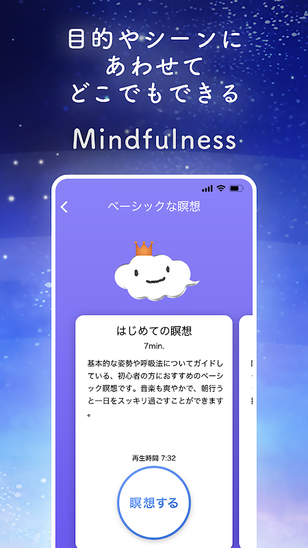 Aplikasi meditasi MEISOON menawarkan berbagai macam menu meditasi seperti meditasi berdasarkan tujuan dan adegan, mindfulness, yoga, dan BGM, sehingga baik meditasi pemula maupun lanjutan dapat menikmatinya. Kami siap.