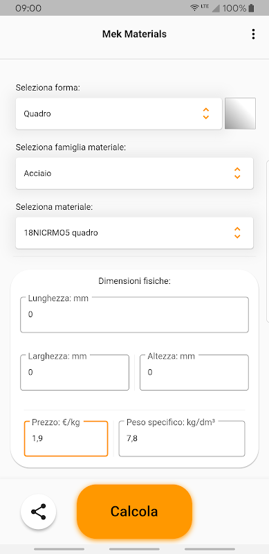 Potete cambiare il prezzo al kg del materiale per avere dati più esatti.