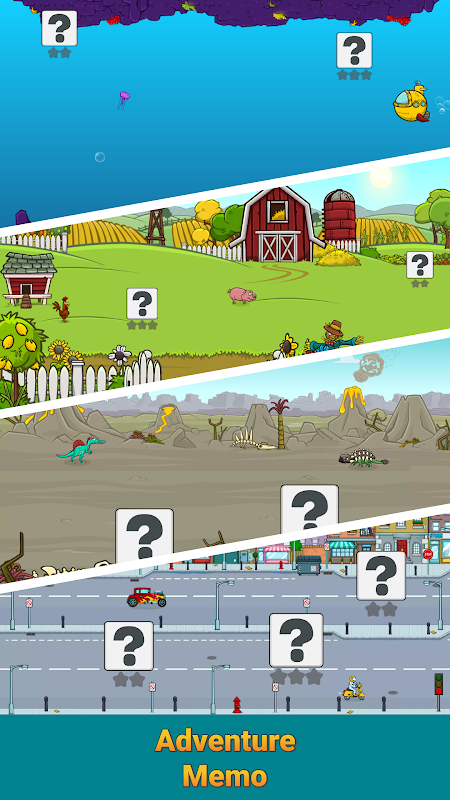 Adventure Memo adalah permainan memori di mana pasangan kartu yang cocok harus ditemukan (pencocokan gambar). Gambar pada kartu dianimasikan dan dengan demikian menawarkan tantangan tambahan serta pengalaman bermain game yang menarik dan bertahan lama.