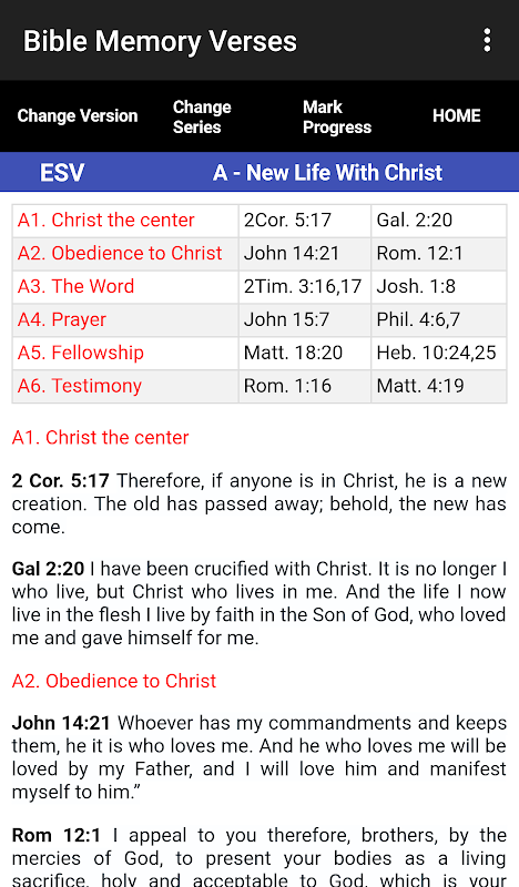 Kami menggunakan rangkaian ayat ini di gereja kami dan kami belajar & menghafal dua ayat setiap minggu dan membaca pada hari Minggu satu sama lain.