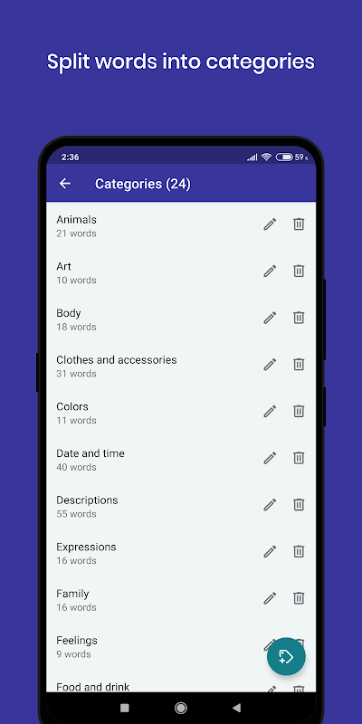 Also, you can add any number of notes to each word, as well as organize the words into categories.