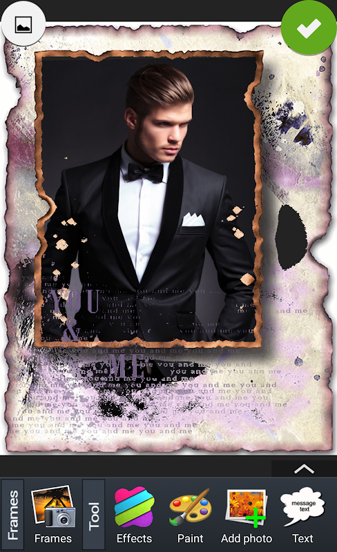 Select any photo / picture from gallery or take a picture using camera and embed the photo of your choice into beautiful Men Picture Frames. You can easily apply different color, photo effects or fonts to your pictures with Men Picture Frames.