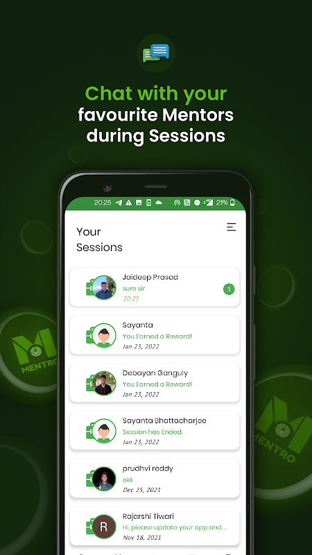 Mentro memberi Anda akses untuk mendapatkan Mentor pilihan Anda untuk membantu dan membimbing Anda, menyelesaikan keraguan Anda, mempersiapkan magang atau pekerjaan Anda berikutnya langsung dari mentor pro secara fleksibel!