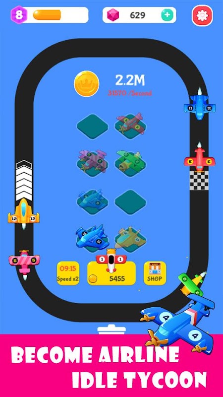 Tambahkan pesawat ke Airline untuk mendapatkan lebih banyak koin, bangun kerajaan penerbangan Anda sendiri.