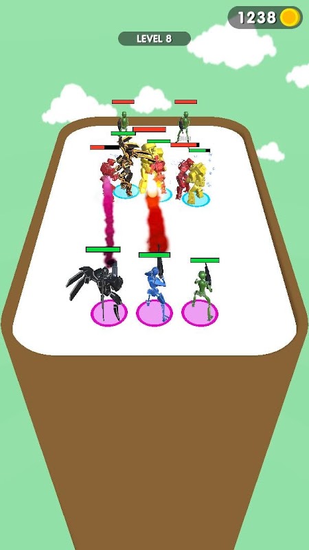 Kumpulkan robot identik untuk mendapatkan Robot keren! Atur pasukan di peta untuk mendapatkan keuntungan. Kumpulkan pasukan terkuat dari robot terkuat!