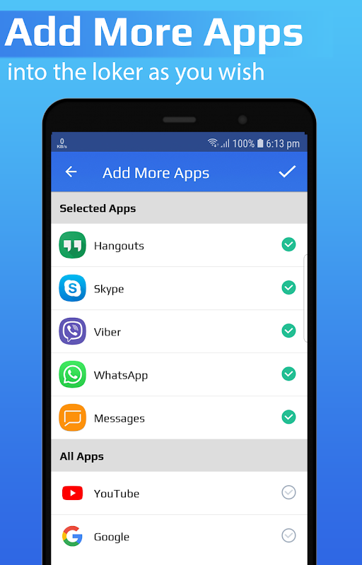 Message locker secures and adds a PIN / Pattern lock to all your messaging, SMS, chat, texting, and email apps that you select on your android device. Message Locker helps you keep your messages secure and stay away from spying eyes. Need to lend over a phone to a friend? You no longer have to worry about anyone getting access to your phone. Trust no one and keep your conversations secure with Message Locker and stay away from snoopers.