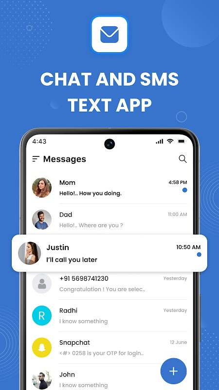 Tinggalkan aplikasi perpesanan lama Anda dan tingkatkan ke Pesan Teks Baru, solusi SMS modern dan menakjubkan. Tetap terhubung dengan semua kontak Anda dengan mudah sambil menikmati antarmuka yang segar dan ramah pengguna. Tetap berhubungan dengan semua kontak Anda & kirim pesan. Pesan menyediakan layanan SMS luar biasa untuk aplikasi penyelenggara SMS. Ini adalah aplikasi pesan teks yang bagus.