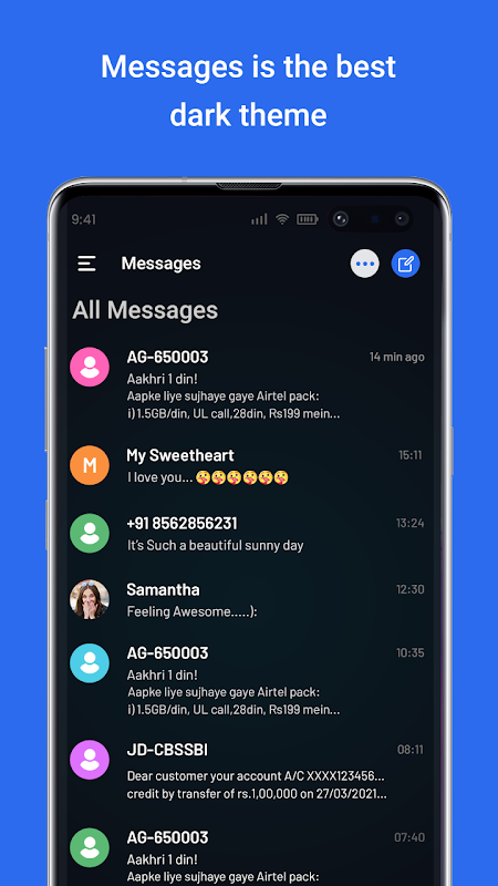 Messages is beautiful, simple, and easy to use. The user interface is neat and clear. With your devices, you can send SMS via both SIMs or send MMS via active mobile network.